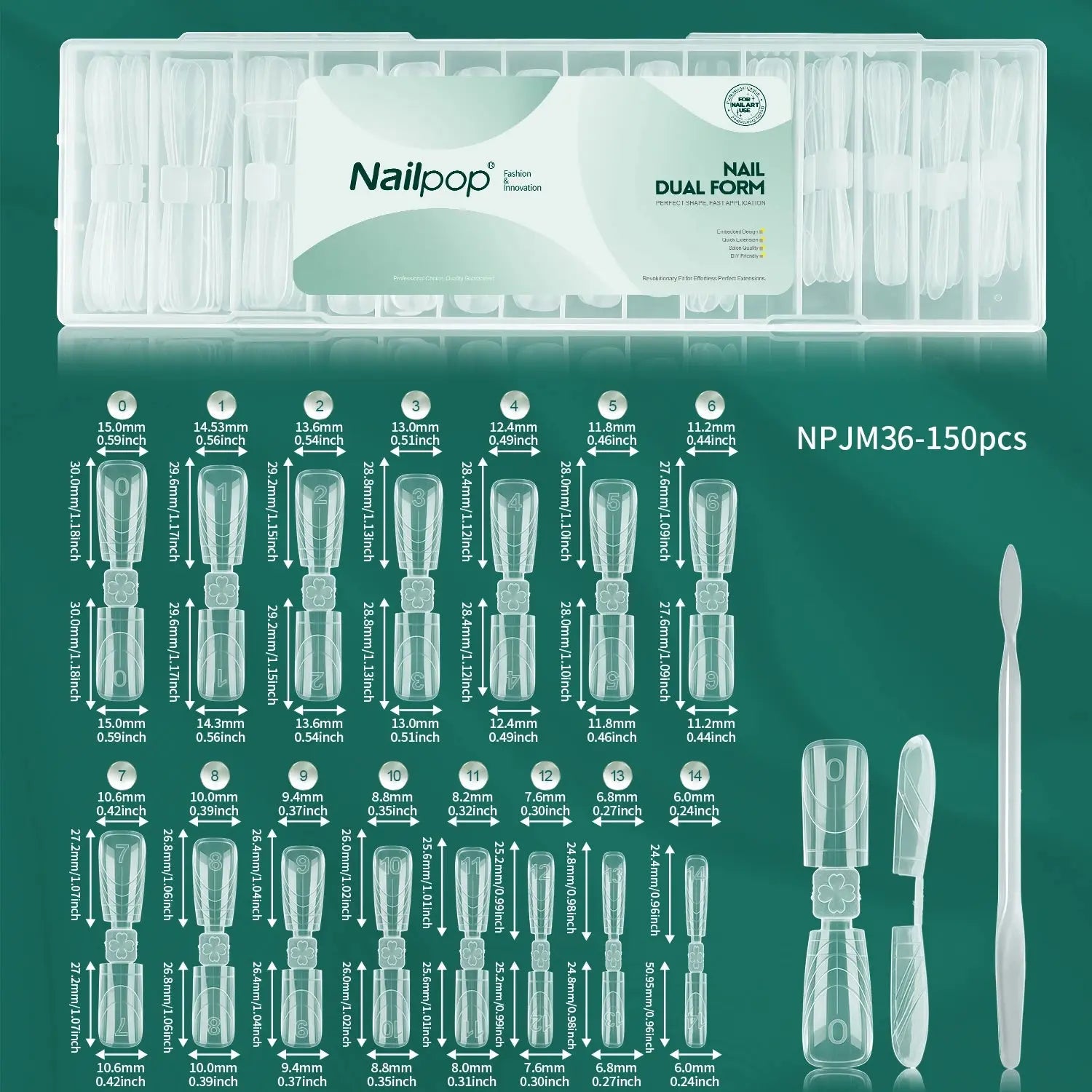 Nailpop 150 pcs Double Ended Nail Dual Forms Square Coffin Shape Extension