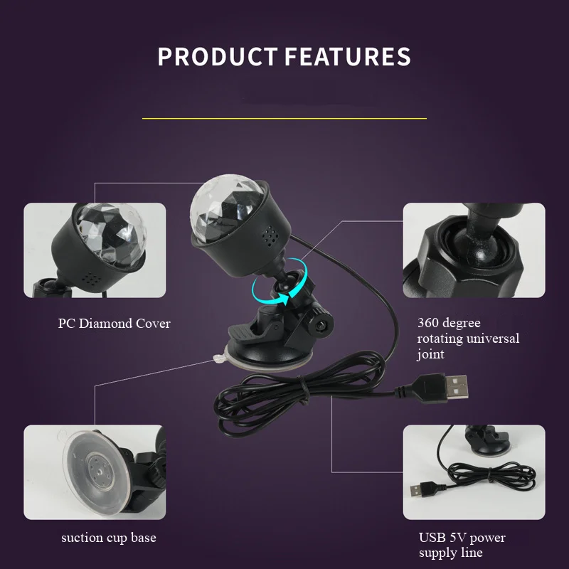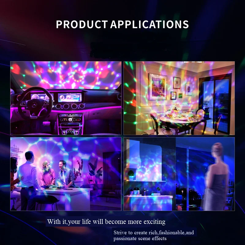 This RGB LED disco light projects dazzling colors that dance with the music, creating a vibrant atmosphere for home gatherings, parties, weddings, karaoke nights, cars, and festive holidays like Christmas and Halloween.