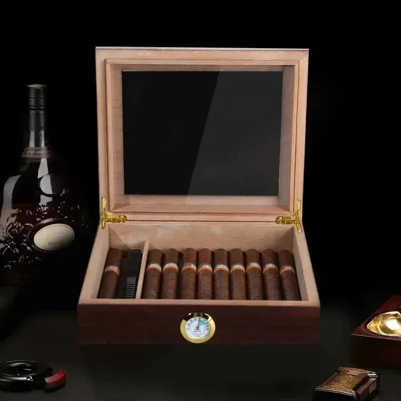 Retro Cedar Cigar Humidor Cigar Box with Hygrometer with Shelves for Storage of Cigars with Humidifier Large Capacity Portable